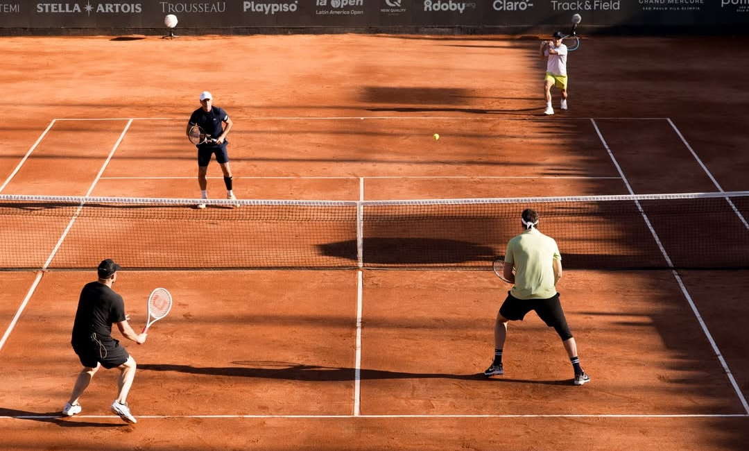 A batalha entre Roddick/Meligeni e Schwartzman/Del Potro começou com Andy sacando e terminou com a vitória dos argentinos em dois sets.